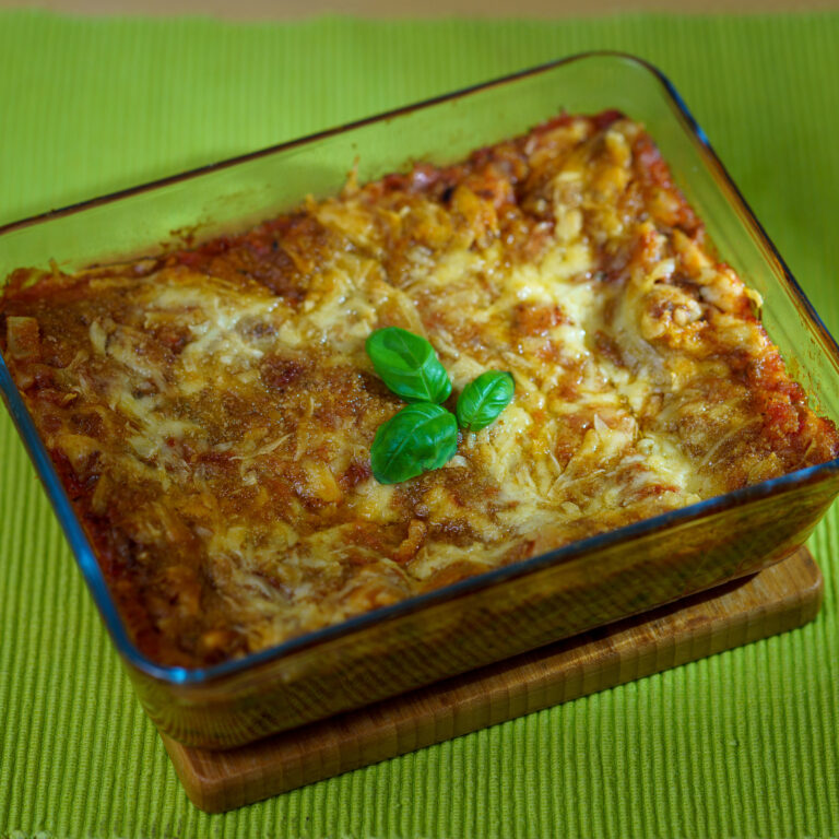 Ovenheerlijke lasagne gevuld met een klassieke tomatengehaktsaus.